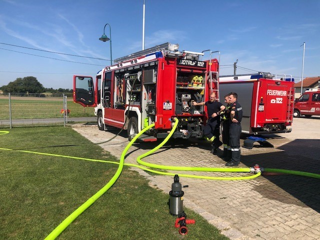Zwei mobile Löschwasserbecken und eine Zubringerleitung über 600 Meter wurden zielgerichtet errichtet. Die Kapazitäten der Wasserentnahmestellen waren zum Zeitpunkt der Übung ausreichend.
